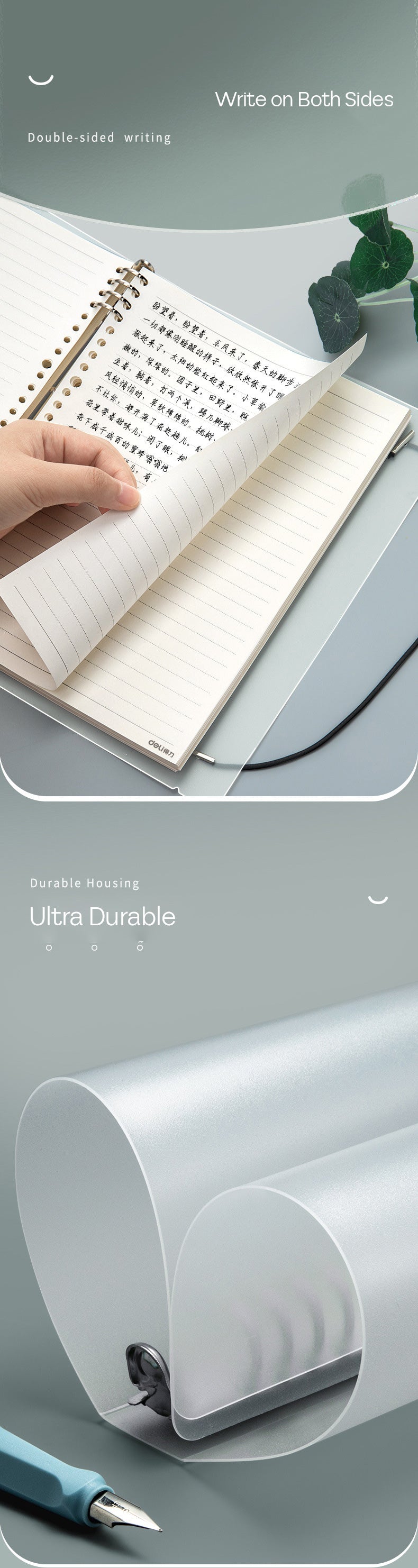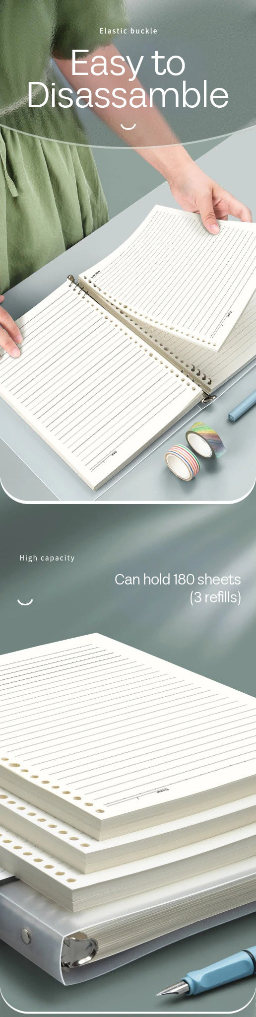 This A5 Binder does not have a middle ring, but features lined paper for a sleek and organized writing or note-taking experience.