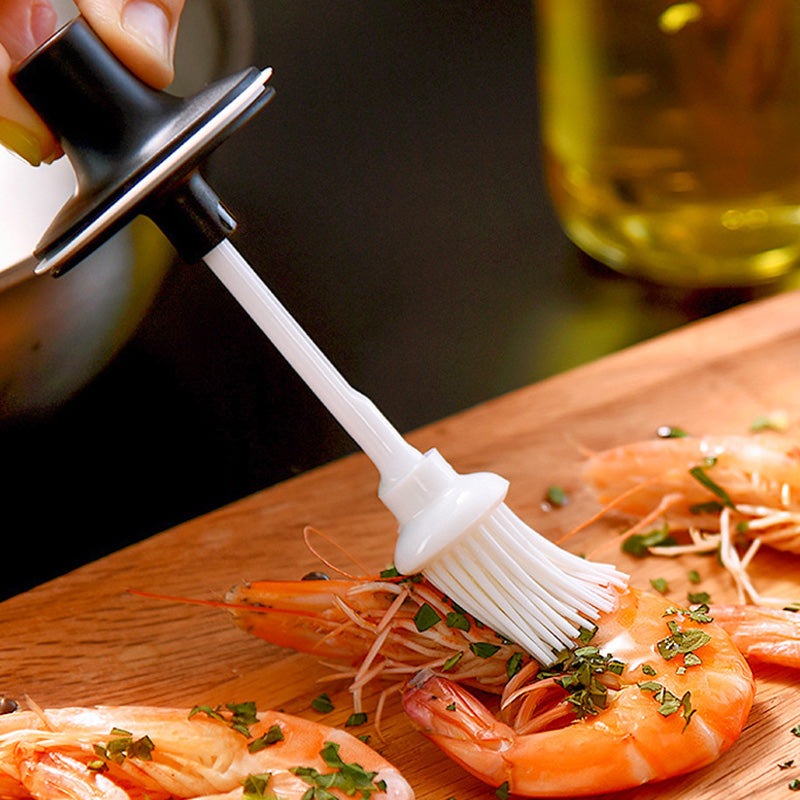 Botol Kaca dengan Tutup Sendok Kuas Praktis Minyak Bumbu Dapur