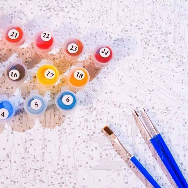 Paint by Numbers mempunyai manfaat mengurangi tingkat stress, meningkatkan fungsi kognitif pada otak, memperbaiki suasana hati, dan meningkatkan kesabaran. Cocok untuk anak-anak maupun dewasa.
