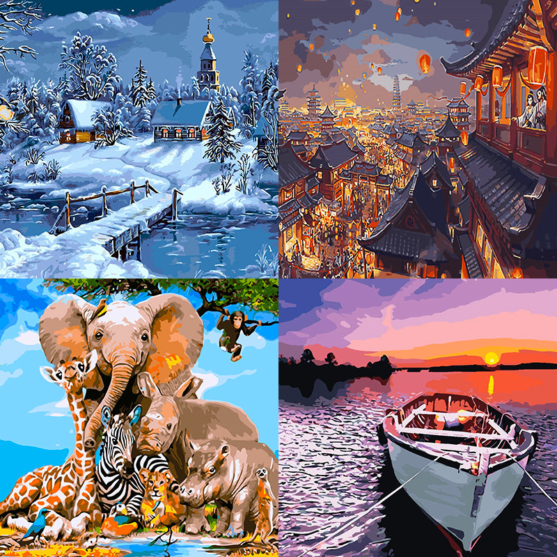 Canvas Paint By Number Kit Digital Oil Painting DIY Lukisan 40 x 50 Seri F