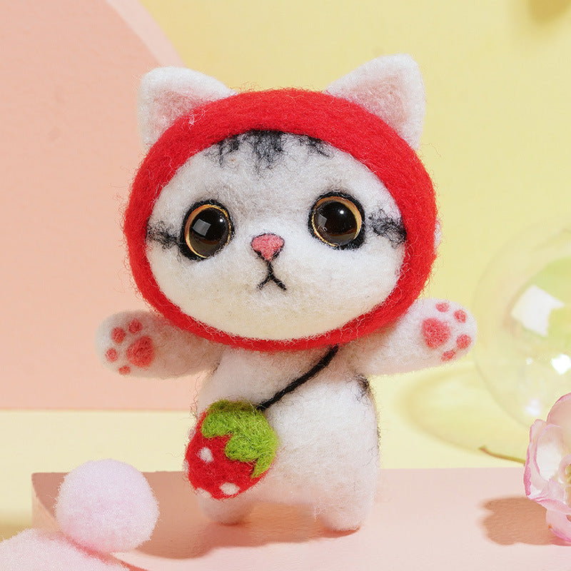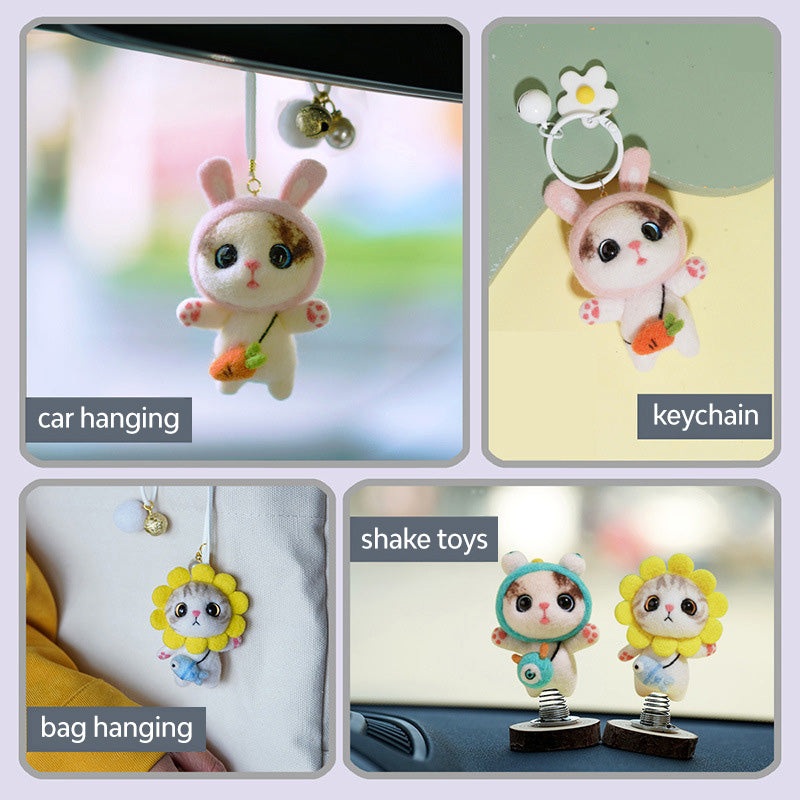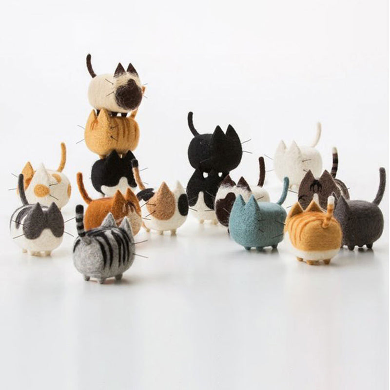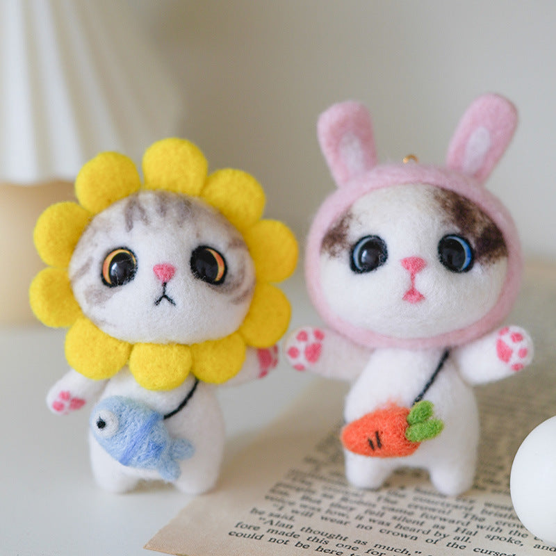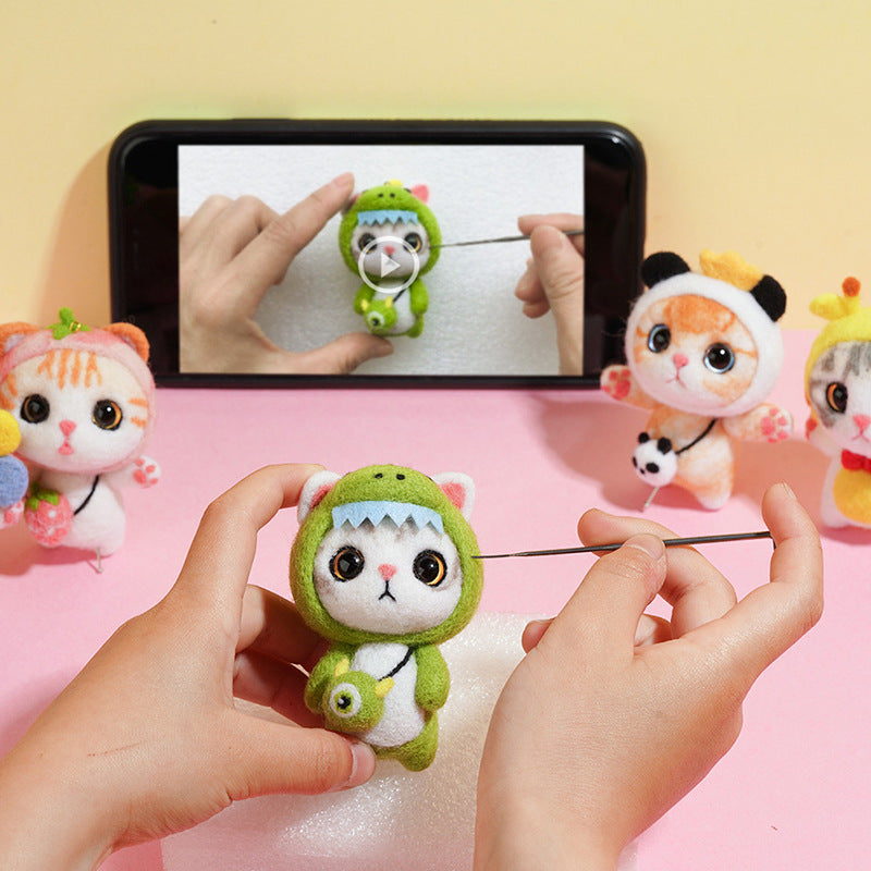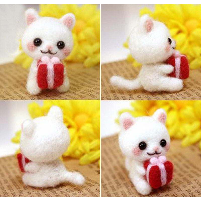 DIY Kit Animal Felt Wool Needle Poke Kerajinan Boneka Kucing Cat Binatang Lucu