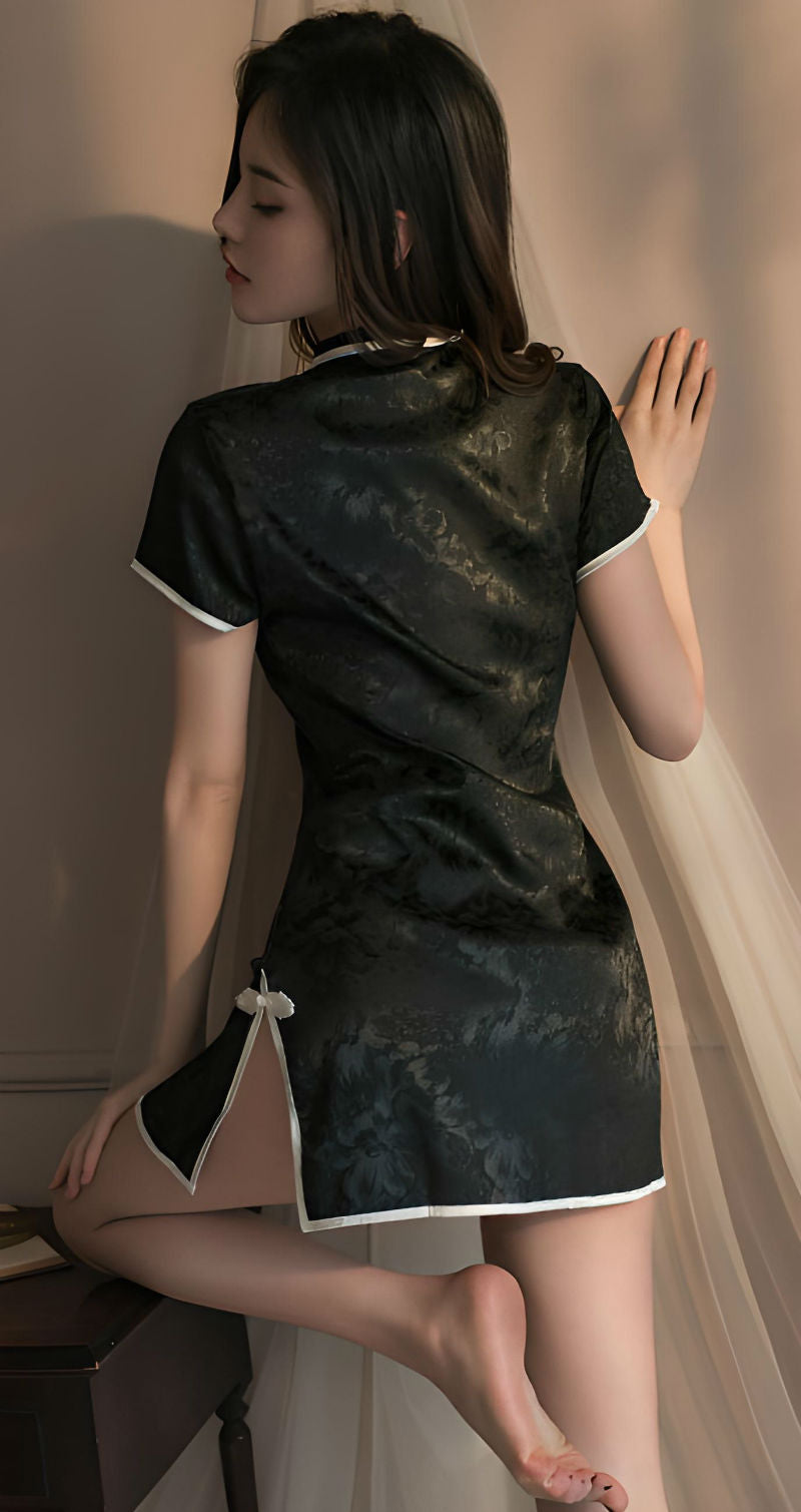 Lingerie Chemise Open Side Dual Tones Trim Cheongsam UM0927