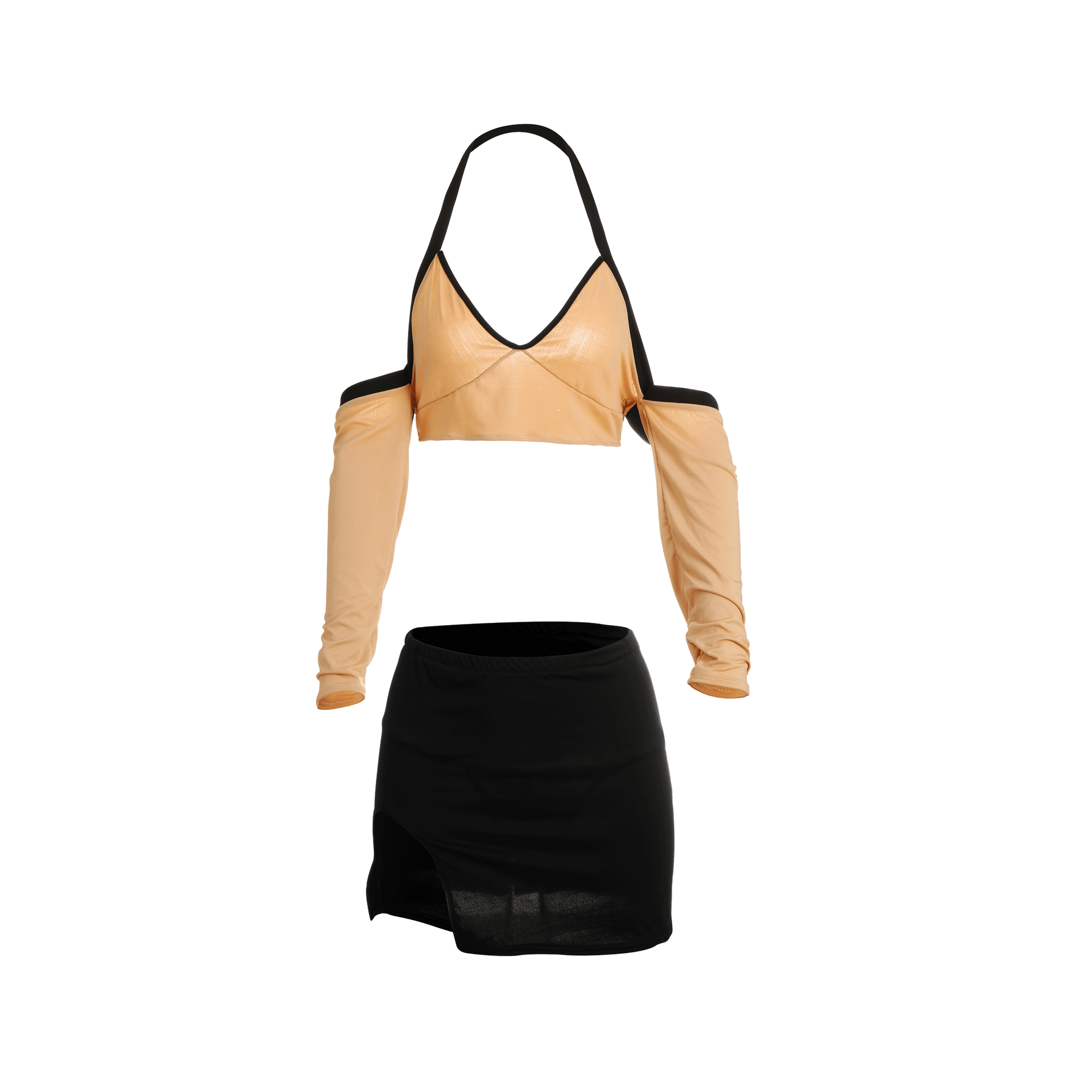Lingerie Two Pieces Sleeves Halter Skirt UC1309