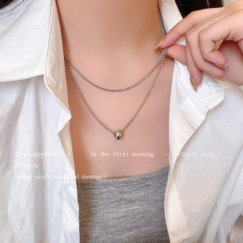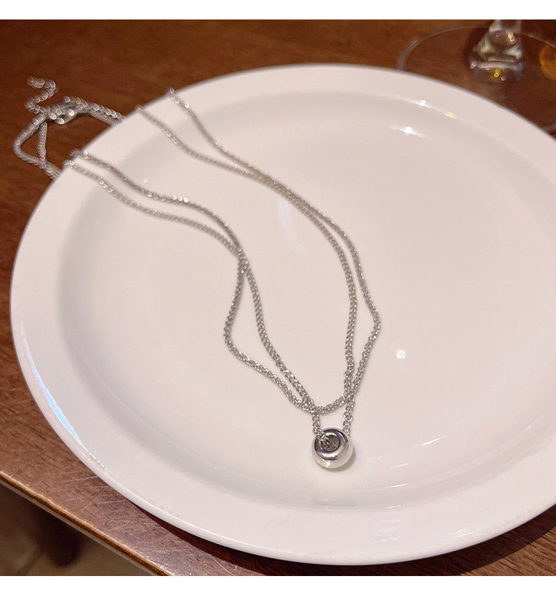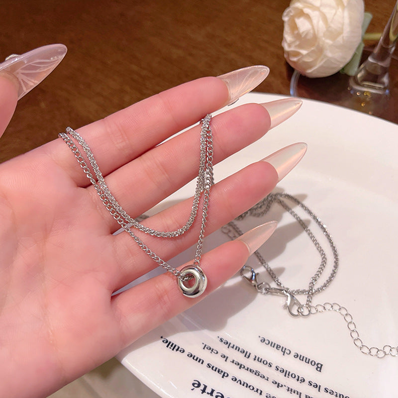 Necklace Double Layered Ring Pendant Sweater Chain XNX1641