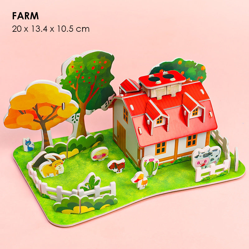 Puzzle DIY 3D Castle Farm Zoo Foam Mainan Edukasi Anak