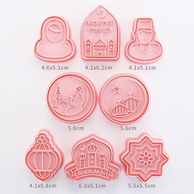 Set 8 Pcs Cookies Cutter Stamp Cetakan Kue Kering Press Tema Idul Fitri