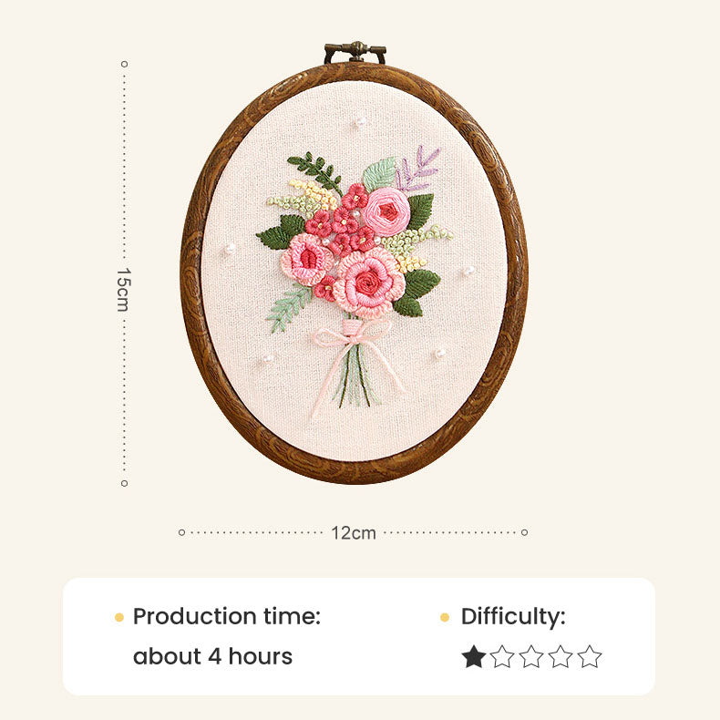 Set Sulam Tangan Pola Pemula Lukisan Hand Embroidery Stater Kit with Vintage Frame