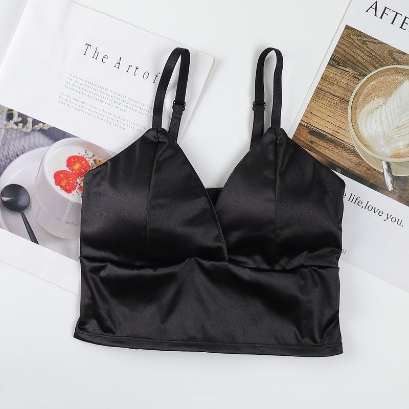Tank Top Bra Satin V Neck Pleated Back WUT7232