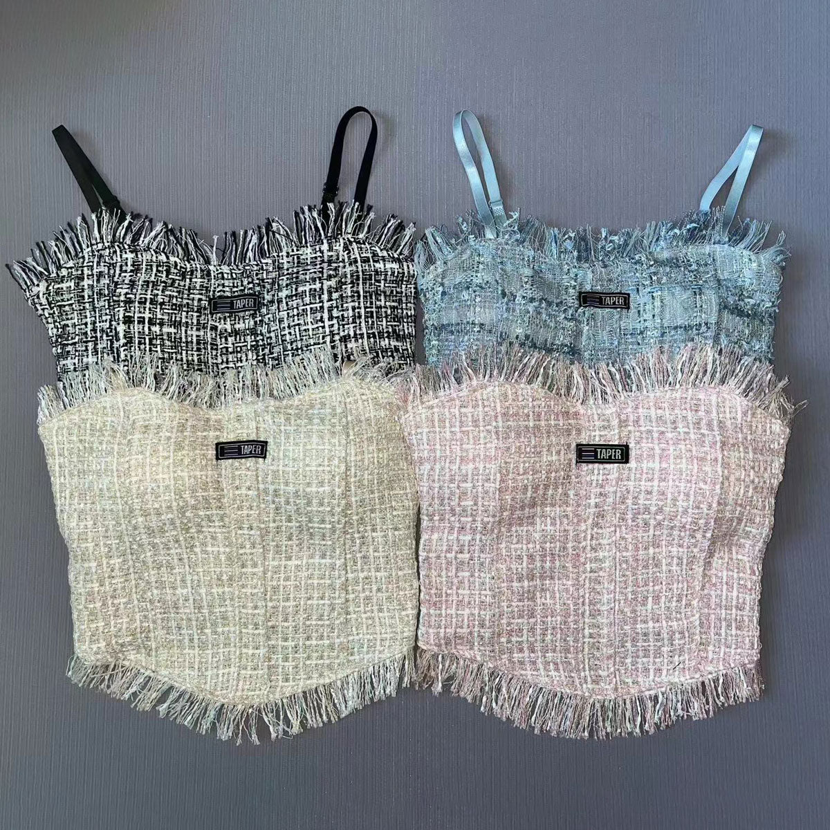 Tank Top Bra Slim Vest Plaid Tassel WUT2258