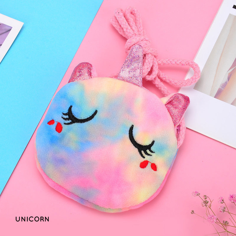 Tas Selempang Bulu Kepala Unicorn Beruang Rainbow